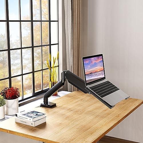 Ergonomic Laptop Desk Stand – Our laptop mount for desk is equipped with a gas spring mechanism. The adjustable laptop tray desk mount sets your laptop to the optimal height and angle which helps reduce eye, neck and back pain.