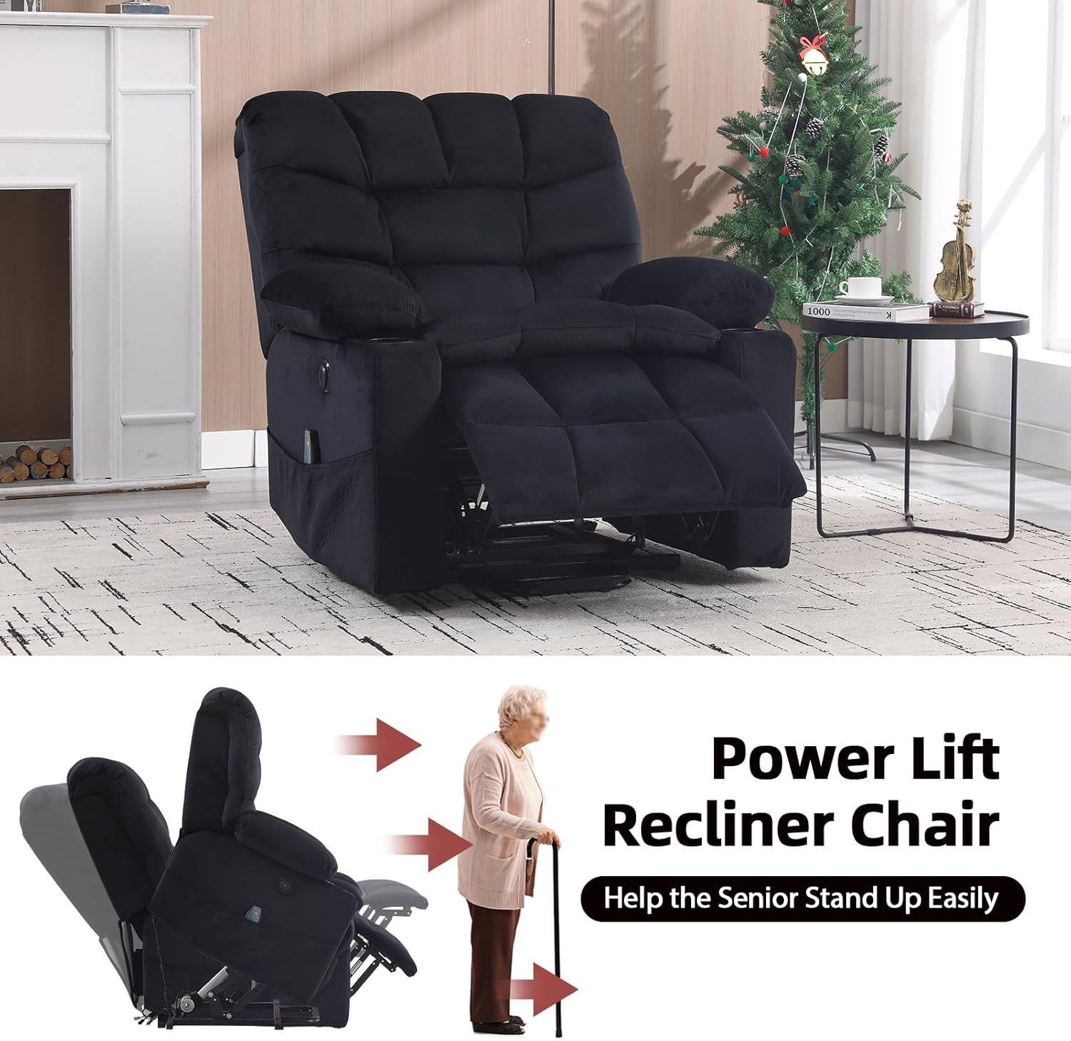 Power Lift Chair: The Phoenix Home Large Power Lift recliner prioritizes the comfort of the elderly. With counter balanced lift mechanism, pushing the entire chair up to help seniors stand up easily without putting strands on their knees and back.