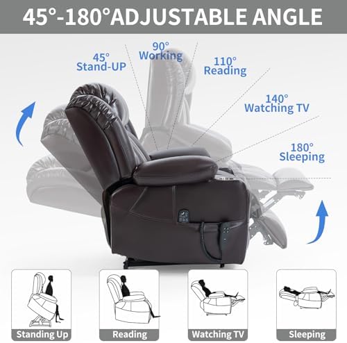 Dual Motor Infinite Position Up to 350 LBS Leatheraire Power Lift Recliner Chair, Heavy Duty Motion Mechanism with 8-Point Vibration Massage and Lumbar Heating, Stainless steel Cup Holders