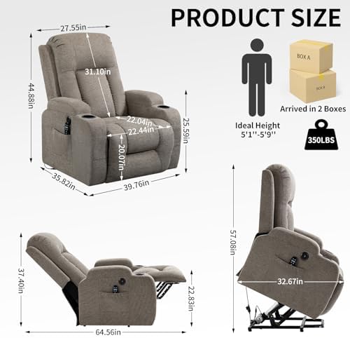 【POWER LIFT ASSISTANCE】: Counter-balanced lift mechanism with ASTM standard actuator pushes the entire chair up to assist the user stand up easily without adding stress to back or knees, smoothly adjust to lift or reclining position you prefer by pressing two buttons on outside of right armrest when sit in the chair.