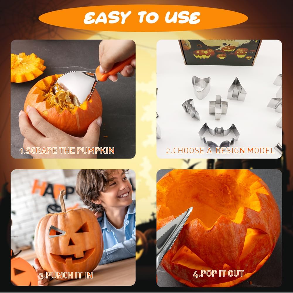 [The Joy of DIY Jack-O-Lanterns] Our 24-piece pumpkin tools feature different molds and carving tools so they can help you create over 1000 3D pumpkin patterns to make your pumpkin characters look expressive. Children can carve and make different jack-o’-lanterns according to their imagination, experience more craft fun, and add more joy to the coming of Halloween.