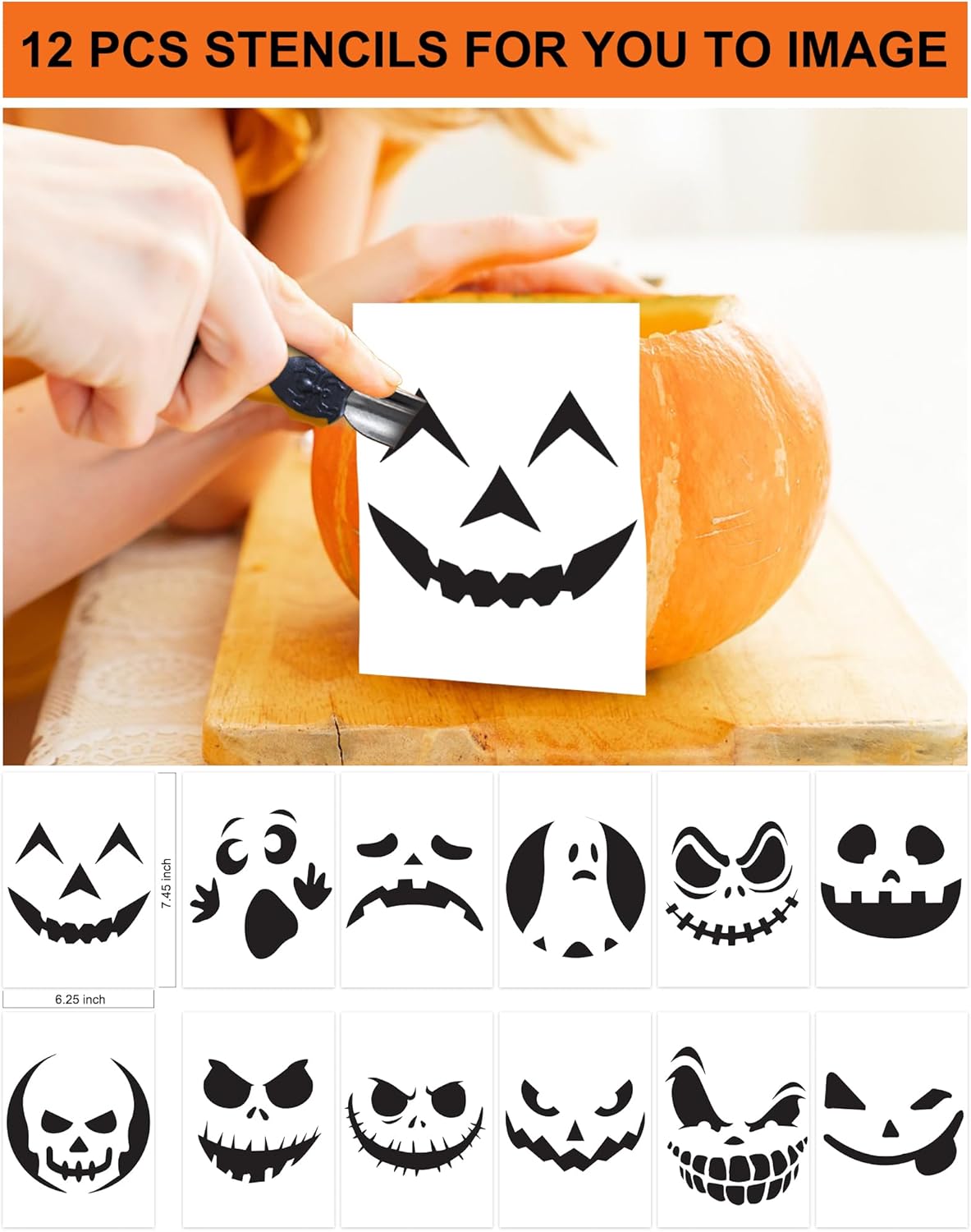 OUTSTANDING JACK-O’-LANTERN: Our new upgraded multi-functional pumpkin carving set comes with stickers. You can finely carve out the details of the Jack-O’-Lantern’s hair, eyes, teeth, etc., making more vivid pumpkin patterns, becoming the highlight of Halloween party night.