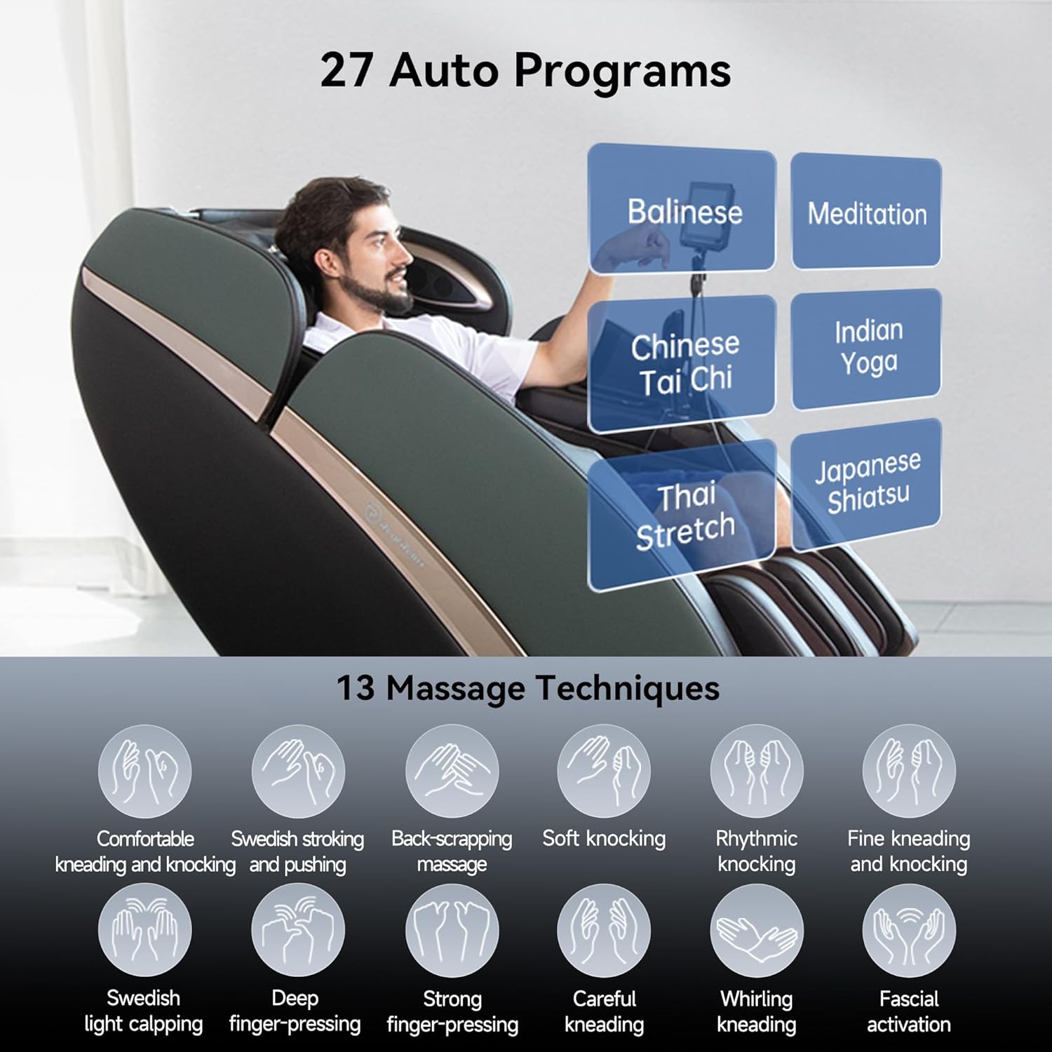[ 4D Massage Chair ] Experience ultimate relaxation with the Real Relax massage chair. This full body massage chair features 27 massage modes and 13 massage techniques, ensuring a personalized massage experience tailored to your needs
