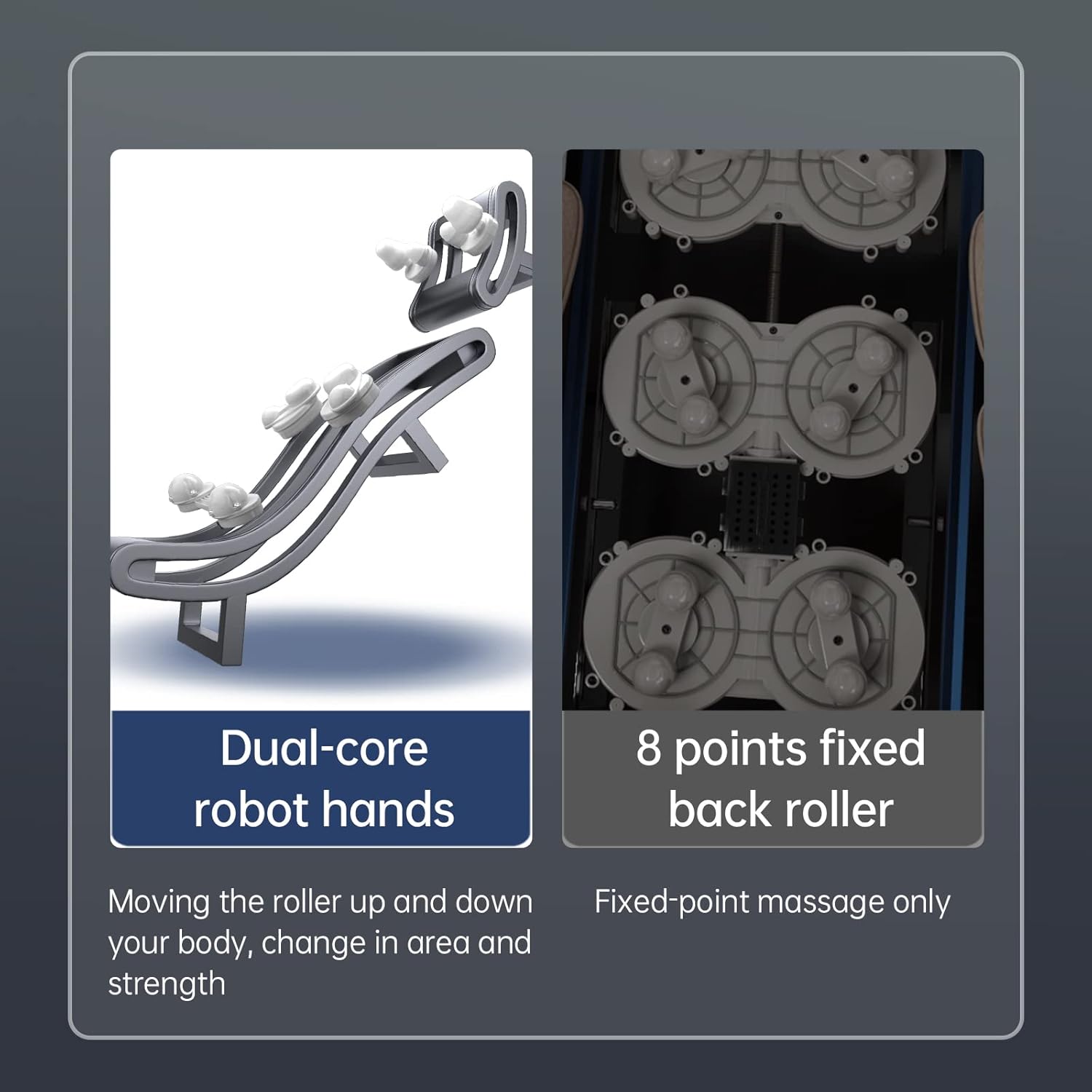 The dual-core S track robots hands rollers generate a more effective massage to neck stress and back pain, than 8 points fixed back rollers