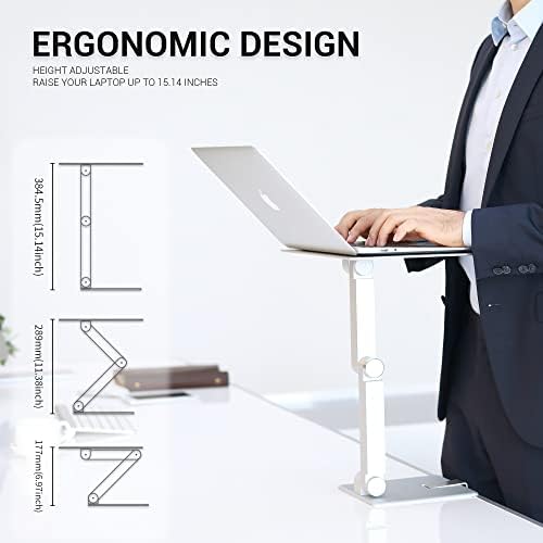 2, Adjustable Height & Foldable Design Adjustable from 1.75 inches to 15.13 inches in height, this stand offers comfort and versatility for your home office. Each pivot point adjusts at 45-degree increments, providing 8 different angles for optimal viewing and ergonomic positioning, making it a comfortable MacBook stand for desk use.