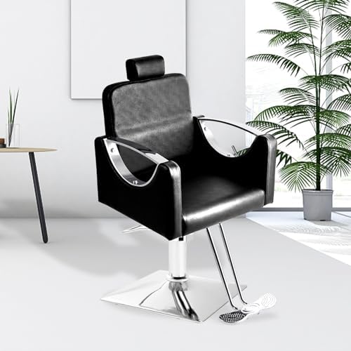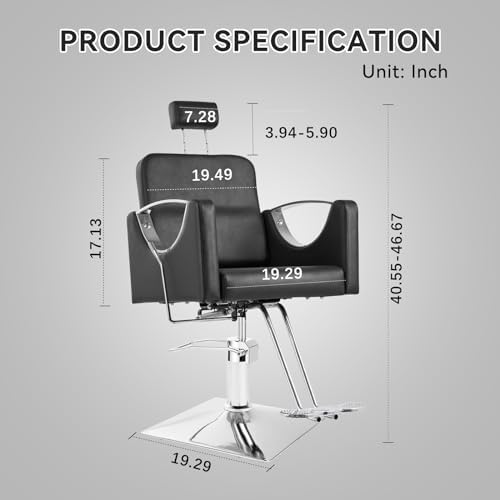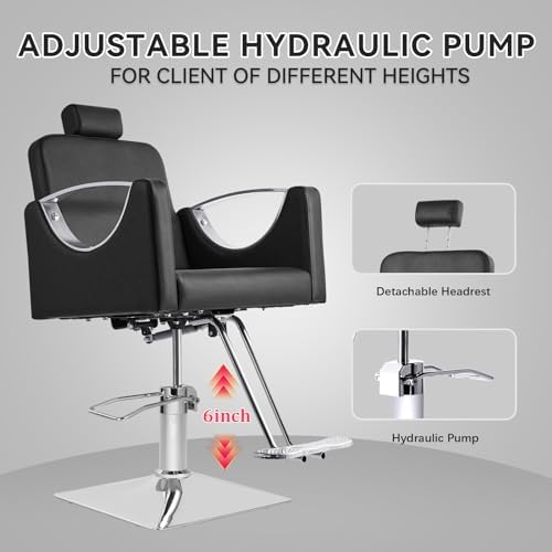 【Comfort Redefined】: Our black salon chairs are made with he high elastic sponge backrest with breathable PVC leather, meanwhile equipped with a 5-inch thick seat cushion, ensures your clients’ comfort during their grooming sessions. The double saddle stitches enhances durability, making it resistant to wear and tear.