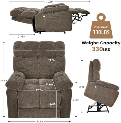 Multi-Angle Adjustable:The position lock of the lift chair is quite infinite. Chair backrest can lie down from 110° to 180°, and chair footrest can raise up independently. Extending footrest and reclining feature allows you to fully stretch and relax, and you can adjust this recliner to your desired degree according your different demand, such as working, reading, watching video, sleeping, and so on.