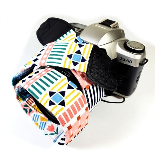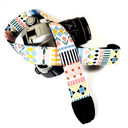 This is one of our most popular designs. This camera strap is sure to impress! The colors are fun and vibrant. There is no other camera strap out there like this! The connectors are easy to use and will securely hold your camera. We handcraft each strap with a level of detail you can’t get anywhere else. At the core of this strap is nylon webbing. That means your strap is virtually indestructible. At the ends are genuine leather for functionality and style. STRAP SPECS -1.5 Inches Wide -Total Length is Adjustable from about 33 to 56 inches – 100% cotton fabric – 100% cotton fabric