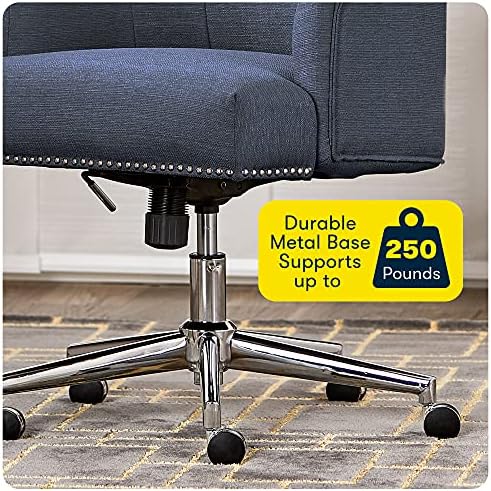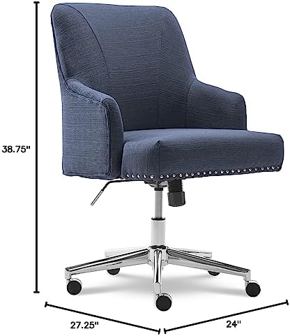 This upholstered desk chair adds a touch of modern elegance to any workspace. Expertly wrapped in tasteful neutral fabric with chrome accents around the base, this fabric office chair is an ideal choice for those who want the functionality of a traditional office chair without sacrificing the integrity of their interior design. A memory foam seat with pocket coils delivers renowned Serta comfort while you work, and a height-adjustable frame allows you to tailor the rolling office chair to your professional space. The stainless-steel stand is designed for effortless 360-degree swivel and all-surface casters offer easy mobility, giving you the perfect mix of functionality and style in your home office.