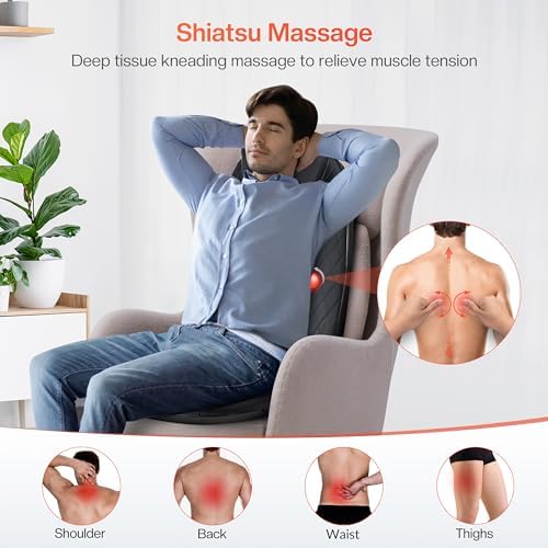 Shiatsu Back Massager with Heat, Deep Tissue Massage Chair Pad, Back Support Inflatable Flap Chair Massage Seat Cushion, Seat Massage Pad for Chair, Pain Relief, Ideal Gifts for Her,Him