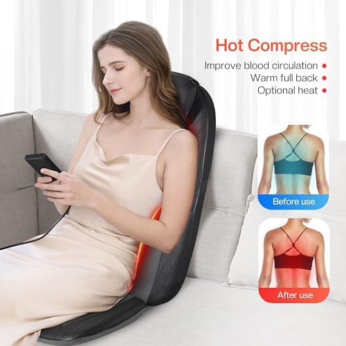Soothing Heat:The shiatsu back massager With soothing heat function,you can add an extra dimension of comfort to your massage experience. The gentle warmth helps to alleviate tension,promote relaxation and improve blood flow. The warmth provided can help you relax a stiff and tired back after a long day.