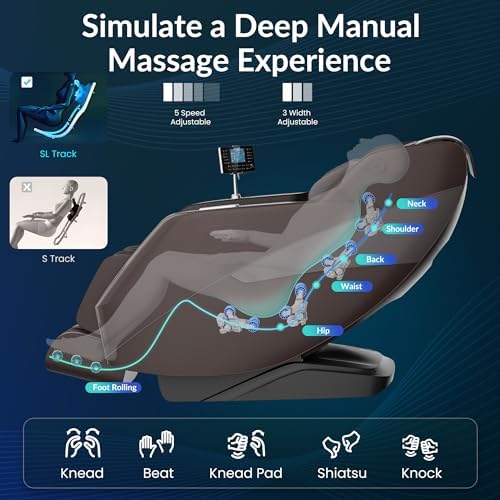 4D SL Track Rolling Massage: The SL track of massager chair conforms to the curve of the human body, perfectly accommodating the neck, shoulders, back, waist, and hips, simulating a manual massage. There are five massage techniques available: Kneading, Beating, Knead Pad, Shiatsu, and Knock. You can choose to target a specific area for massage or opt for a full body massage to effectively relieve upper body muscle tension.