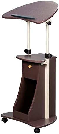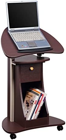 The Techni Mobili Laptop Cart with Swivel Top and Storage is made of MDF wood panels with a moisture resistant PVC laminate veneer and a scratch-resistant powder-coated steel frame. The table panel tilts so you can adjust it to the most ergonomic, comfortable working angle. It also features a safety edge-stopper to prevent objects from sliding off when tilted. You can easily adjust the table height between 30.75 and 45.5 inches with dual adjustment knobs. There is an open storage compartment and a closed storage compartment with bottom hinges. Two of the fours non-marking nylon casters include locking mechanisms. The table and closed storage top and bottom shelves each have a 20 lb weight capacity and the base of the cart has a 30 lb weight capacity. It is ready and easy to assemble . Includes a 5 Year Warranty.