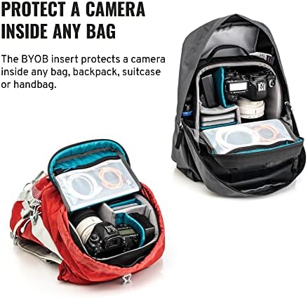 PROTECT A CAMERA INSIDE ANY BAG – Use your favorite bag as a camera bag. The BYOB insert protects a camera inside any bag. backpack, suitcase or handbag, and its soft shell molds easily to the shape of any carrying bag.