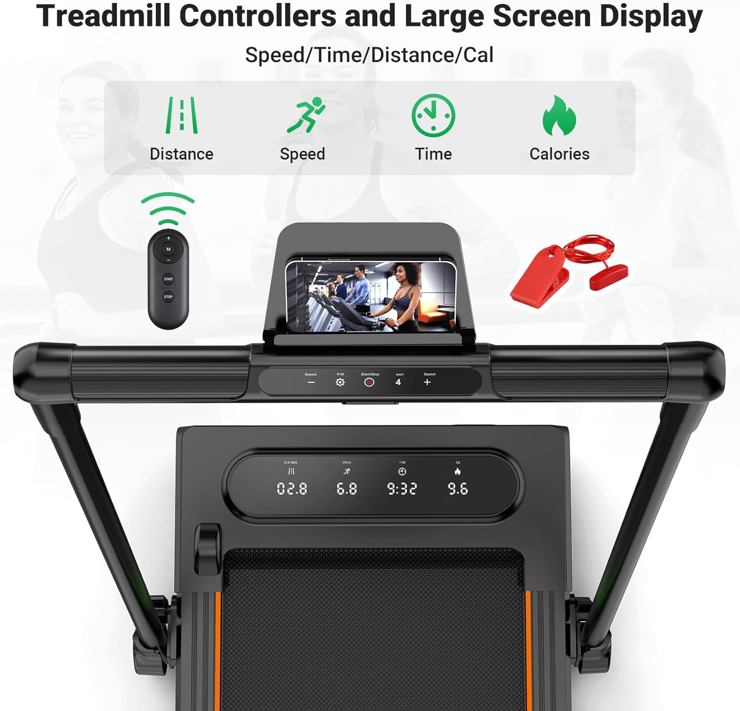 【2 in 1 Under Desk Walking Pad Treadmill】The stronger steel frame structure of 2024 Upgraded walking treadmill support up to 265 lbs. Folded handle to serves as a walking pad with speeds from 0.6 to 3.8 mph, ideal for light exercise, help to discover the high efficiency of walking while you work. Raise handle transforms into a treadmill reaching speeds of 3.8 to 7.6 mph (others max out at only 3.8 or 5 mph). Whether you’re a beginner or a seasoned runner, discover your required speed on it.