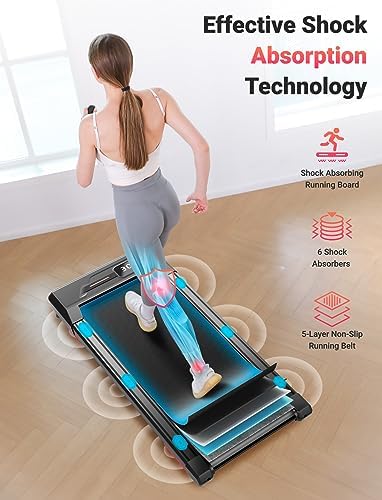 【Intelligent Shock Absorption】Walking pad with a durable steel frame , 6 silicone shock absorbers,shock absorbing running board,5-Layer non-slip running belt make your running quieter, safer and more stable.