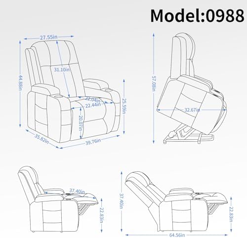 Counter-balanced lift mechanism with ASTM standard actuator pushes the entire chair up to assist the user stand up easily without adding stress to back or knees, smoothly adjust to lift or reclining position you prefer by pressing two buttons on outside of right armrest when sit in the chair.