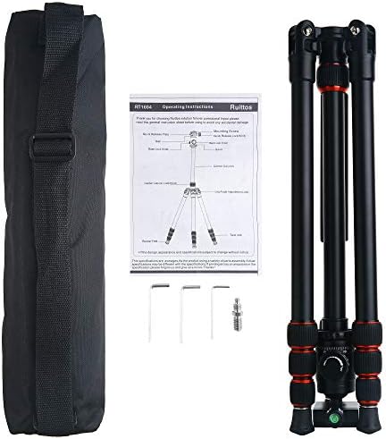 Compact, Portable / Travel and Work Tripod: Weights just 3.7Lbs, Ruittos RT1604 portable tripod can be folded down to 18″ for portable carrying and storage. Height ranges from 18” to 63”, comes with carrying bag, suitable for both travel and work.