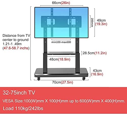 TV Stands Bedroom/Office Mobile TV Cart On Wheels, Fits 75 65 50 55 60 Inch TV, Black Height Adjustable Floor Rolling TV Stand, Hospital TV Display Trolley Stand Beautiful Scenery