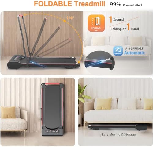 Shock Absorption Design and Compact Structure: The treadmill belt adopts a 5-layer shock absorption design, effectively reducing impact on the joints and providing a more comfortable running experience. With a compact structure, the product is easy to store, making it an ideal choice for various living spaces.