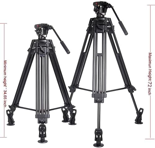 【Large Load Capacity】A 72-inch Professional Video Tripod System Supports 33 LB: designed for DSLR Cameras,Video Camcorders,most tripod, camera slider, jib or crane, Cine-Cams and its various attachments, HDSLR and interchangeable lens cameras. Adjustable tripod height for different photography requirement.
