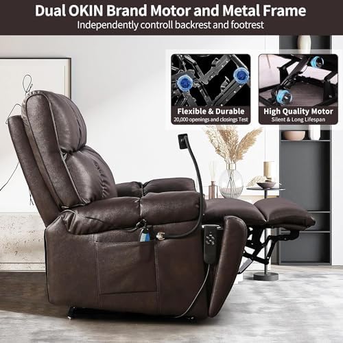 【DUAL OKIN MOTOR】With dual OKIN motor,the backrest and footrest of this power recliner can be adjusted individually. The chair helps seniors to stand up with a 4-button hand controller, which is easy to use. It’s ideal for people who have back pain or mobility issues.