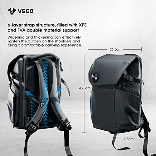 VSGO Camera Backpack Professional DSLR/SLR Large Capacity Backpack, Compatible For Sony Canon Nikon Camera, DJI Stabilizers And 15.6 Inch Laptops, Lens Tripod Accessories etc.