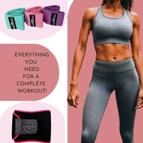 waist trainer & resistance band set for women & men, home workout with a sweat trimmer belt for sauna effects