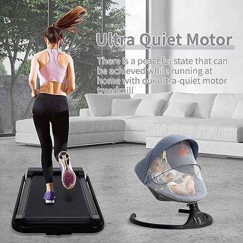 【Sturdy Construction】: Adopted with the strong and durable steel frame design, coupled with shock absorbing and noise reducing, make this desk treadmill become quieter, safer and more comfortable when you run, ideal for home or office workout. What’s more, this walking treadmill can support a weight of up to 220 lb.