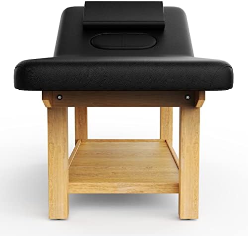 Wood Stationary Massage Table for Treatment Table Physical Therapy Table Spa Facial Bed, PU Leather 31.5” Wide × 75” Long Heavy Duty Professional Wide Massage Bed – Black 4 Legs Integral Structure