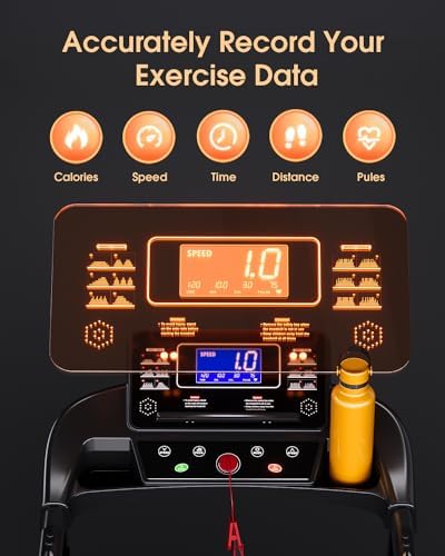 【Digital Display Screen】The Digital LCD display can track your time, speed, distance, heart rate and calories burnt, which helps you work out more efficiently and scientifically. Our electric treadmills can withstand 220 pounds of weight due to its heavy-duty construction.