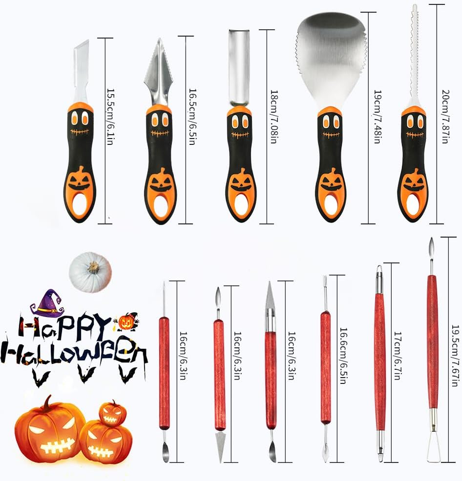 Enjoy With Halloween Happy time: Creating a pumpkin lantern is a fun job on Halloween, our pumpkin carving kit has 11pcs, can allow you to cooperate with your families and friends at the same time, enjoy the happy Halloween pumpkin carving time. You can also give pumpkin carving tools to friends as Halloween percent