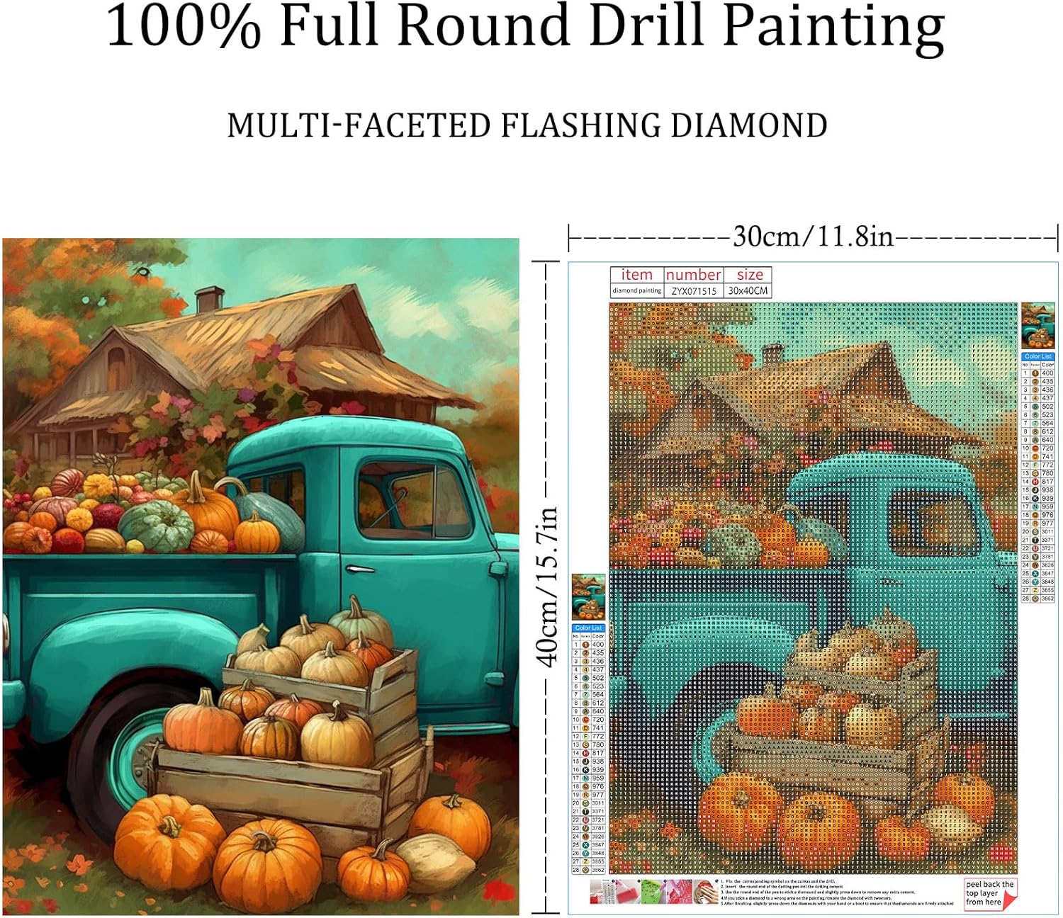 Theme Pattern:Thanksgiving Pumpkin Truck Diamond Painting Kits (Frameless)